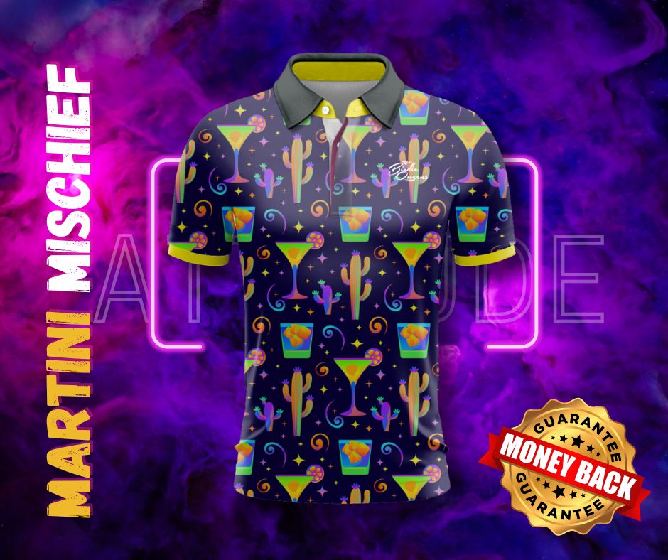 Meet Martini Mischief โ your new go-to for stirring up trouble on the fairway. Featuring a cheeky cactus and martini print, this polo was made for Birdie Queens who like their drinks dirty and their drives straight.